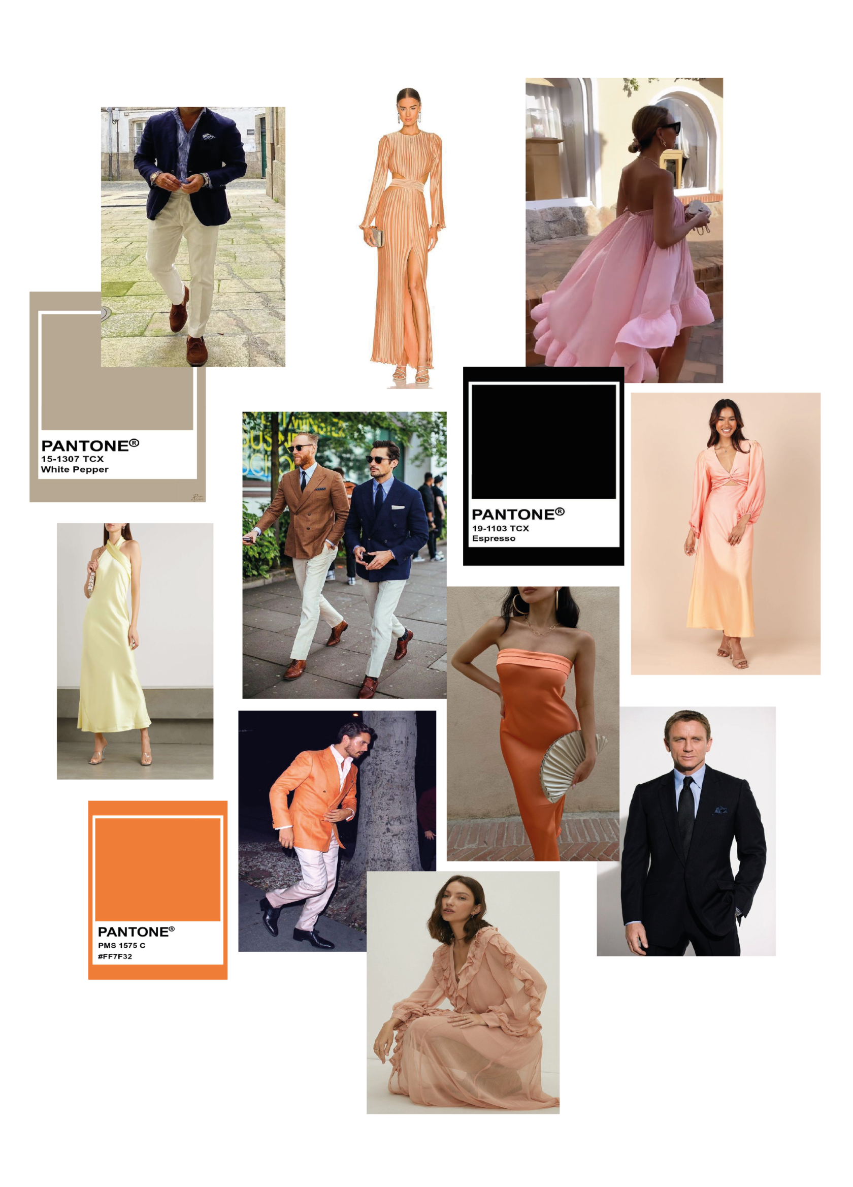 На нашей свадьбе Вы будете хорошо смотреться в светлых приглушенных или пастельных оттенках оранжевого, бежевого, кофейного, розового, желтого и зеленого.